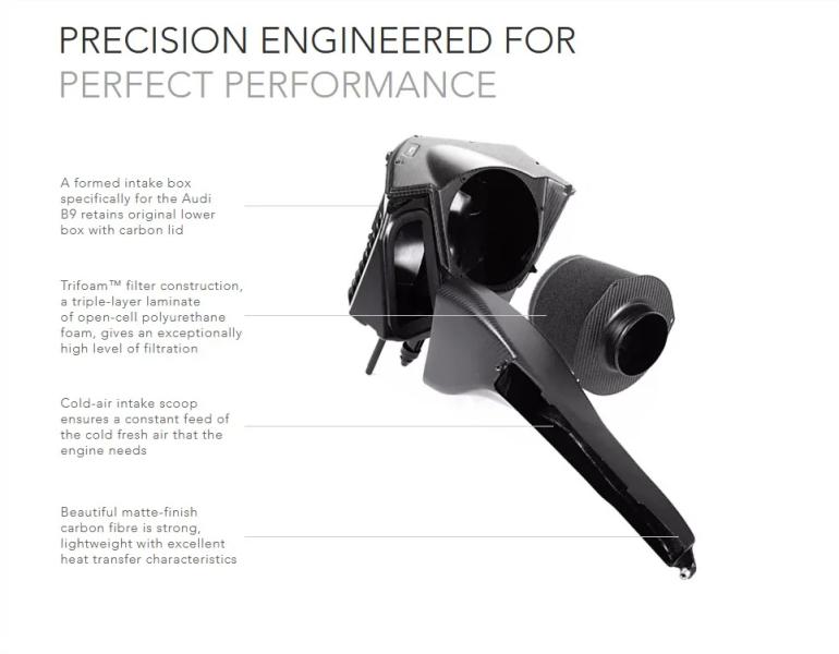 VWR luftfiltersystemet er produceret med ægte carbon hus, og sørger for at der leveres kold luft fra fronten af bilen via det medfølgende front scoop. Dette giver kold luft direkte til brændstofmåleren på den mest effektive måde.