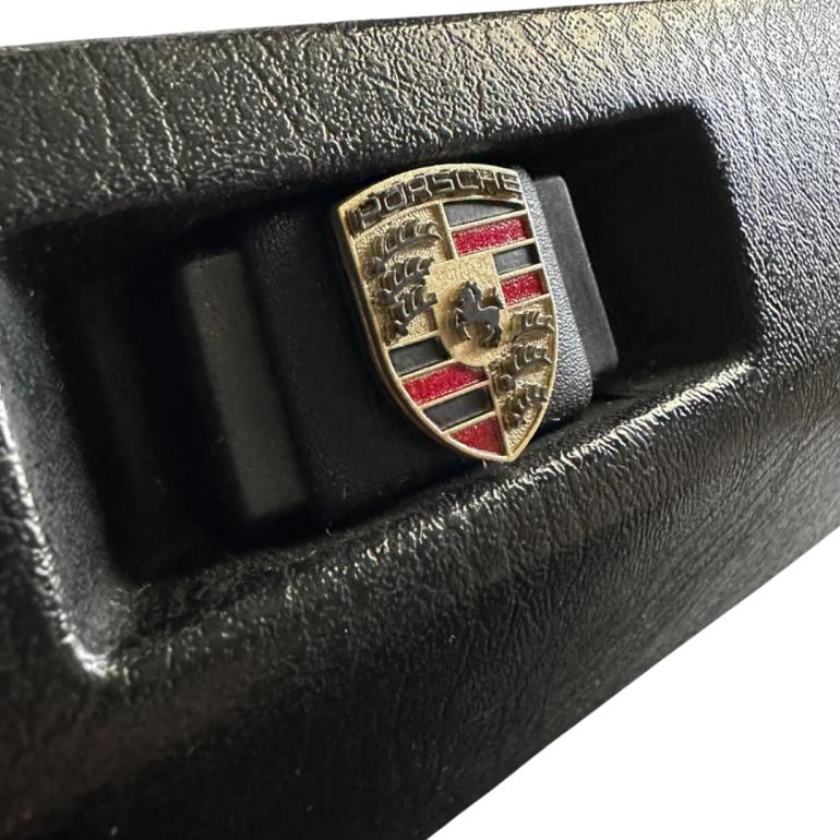 Handskerumslogo Porsche til Golf 2/Jetta 2 (MK2). Logoet erstatter handskerummets låsecylinder eller plast-blindproppen og passer i alle MK2 handskerumslåse. Plug-and-play uden specialværktøj – montage tager ca. 5 minutter. Sættet leveres med alt nødvendigt monteringshardware. Kan bruges til at udfylde hullet, hvis låsecylinderen er fjernet. Har du stadig lås, kan logoet monteres, så låsefunktionen bevares. Den originale lås kan altid monteres tilbage igen. Fremstillet som 3D-print i plast.