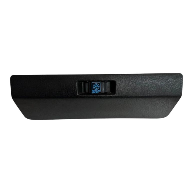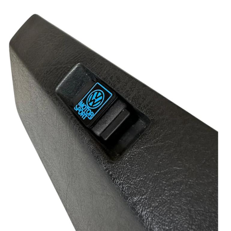 Handskerumslogo i VW Motorsport-look til Golf 2/Jetta 2 (MK2). Logoet erstatter handskerummets låsecylinder eller plast-blindproppen og passer i alle MK2 handskerumslåse. Plug-and-play uden specialværktøj – montage tager ca. 5 minutter. Sættet leveres med alt nødvendigt monteringshardware. Kan bruges til at udfylde hullet, hvis låsecylinderen er fjernet. Har du stadig lås, kan logoet monteres, så låsefunktionen bevares. Den originale lås kan altid monteres tilbage igen. Fremstillet som 3D-print i plast.