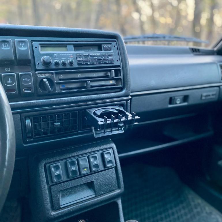 Opgrader din VW Golf 2 / Jetta 2 (MK2) med en kopholder til de midterste luftdyser. Plug-and-play montering – kopholderen sidder fast i midterdyserne for et stabilt greb. Mekanisme med fjeder og tandhjul: Når du klikker den ud, kommer den langsomt frem; når den skubbes ind, glider den tilbage og klikker i hvileposition. Luft kan stadig passere gennem dyserne, men luftmængden reduceres naturligt, da kopholderen sidder i vejen.