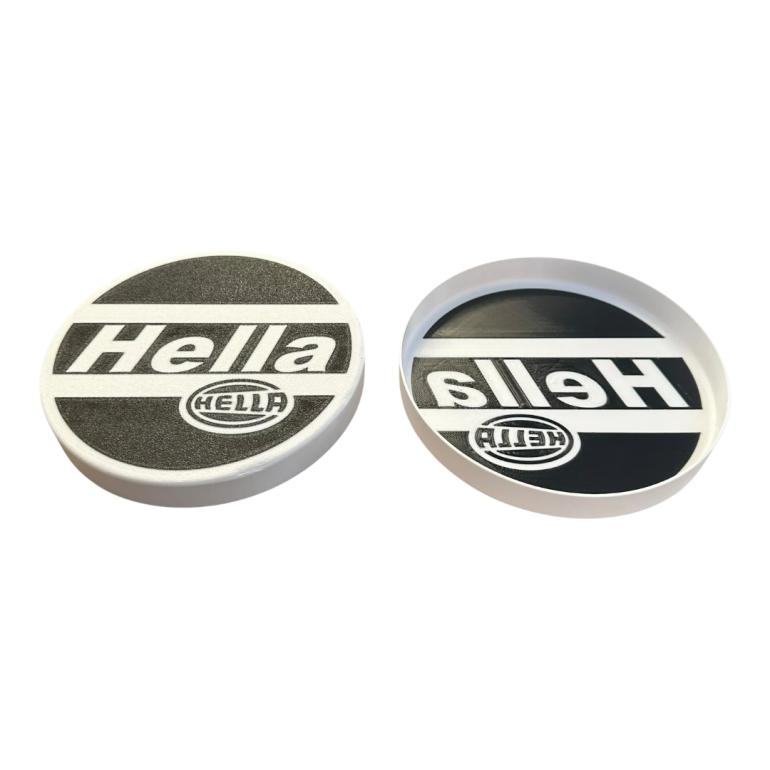 Sæt med lygteafdækninger til Hella indvendige grilllygter i quad grille. Montering kan kræve lidt pres; det er lettest at montere, når grillen ligger på et bord, så lygterne ikke flytter sig. Fremstillet i slidstærk sort/hvid PETG-plast, der kan tåle et vist tryk. Dobbeltklæbende tape kan bruges for ekstra fastholdelse, men er typisk ikke nødvendigt. Kan muligvis også passe andre biler med tilsvarende lygtestørrelse, fx VW Golf 1 Cabriolet. Mål: 137 mm x 12 mm.
