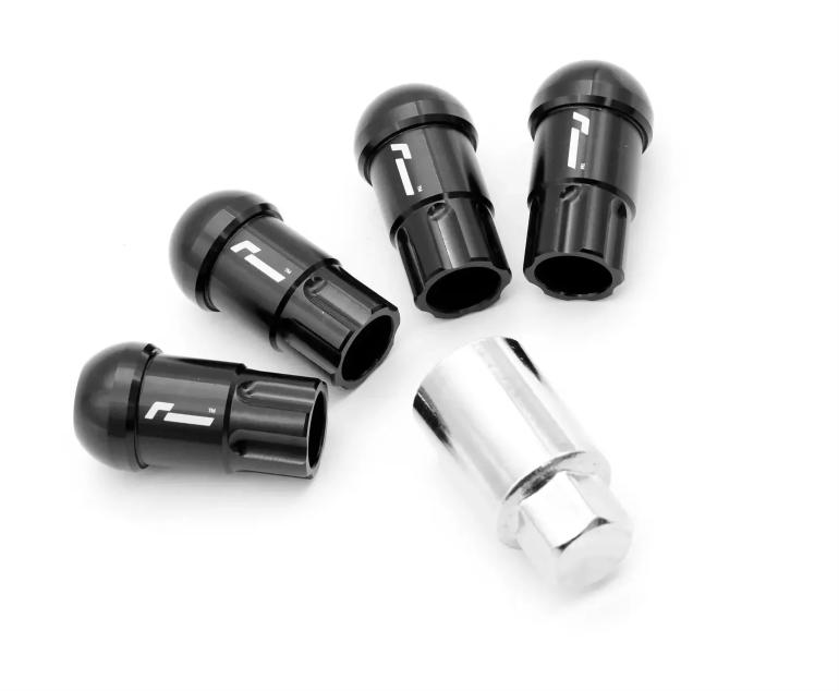 Installationen er enkel: Fjern én af de eksisterende RacingLine hjulmøtrikker fra hvert hjul, og erstat den med en låsemøtrik fra sættet. Dette sikrer øget beskyttelse mod tyveri.