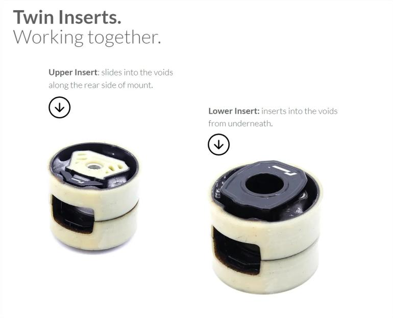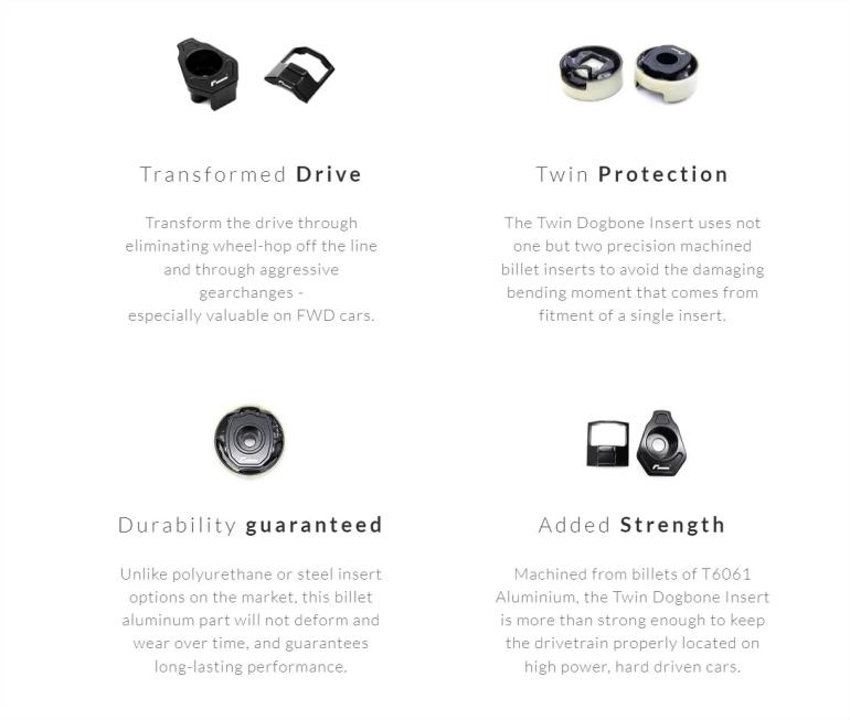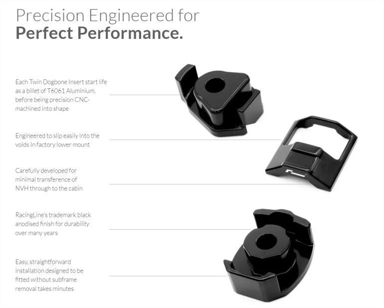 Indsatsen skubbes ind i de originale motor ophæng og afstiver hele drivlinjen for at give en meget mere kontant styring og køreoplevelse.