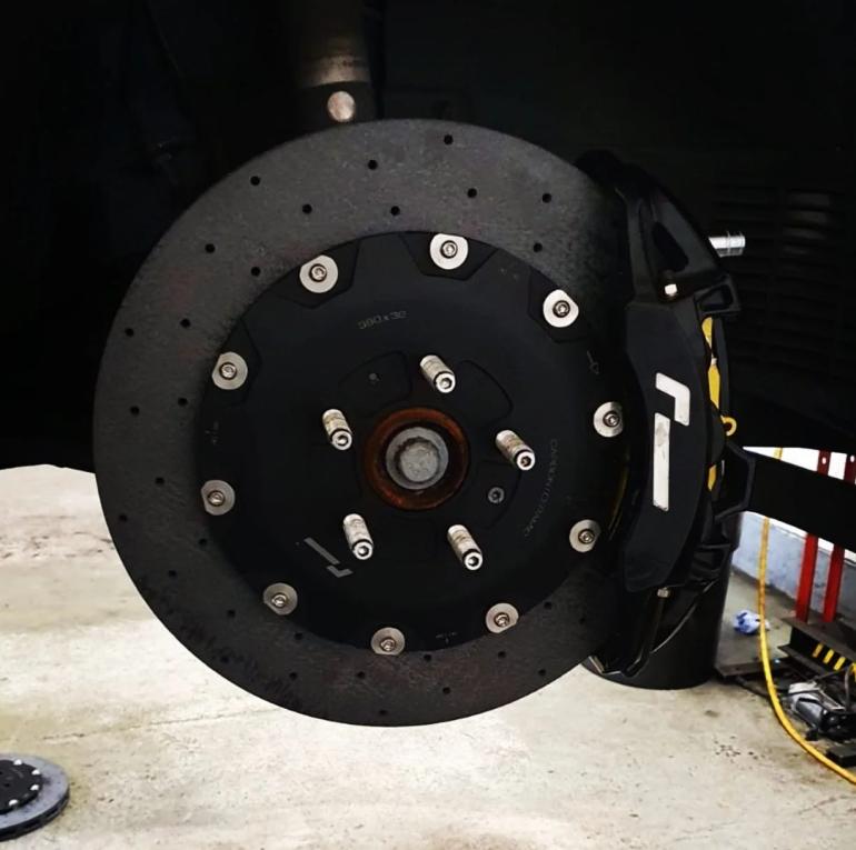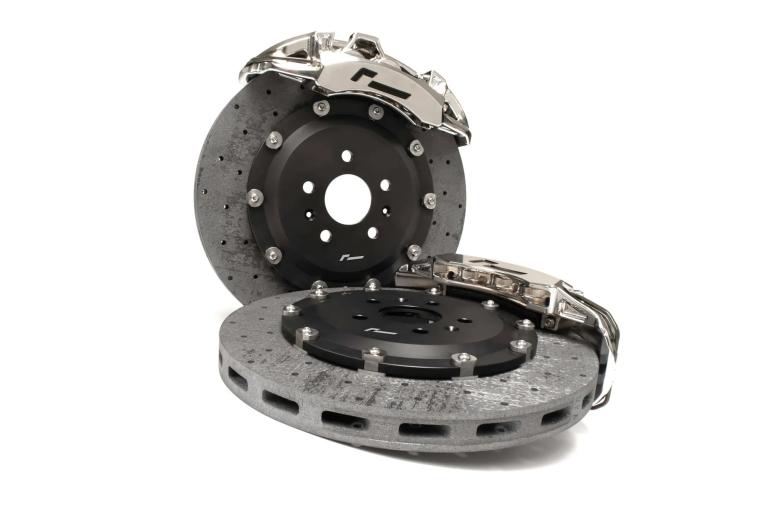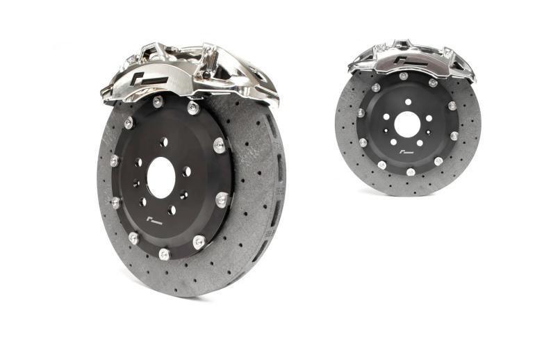 380mm Stage3+ Carbon Ceramic fuldt keramiske bremser fra RacingLine VWR til MQB platformen (VW Golf 7 / 8, Seat Leon 5F, Skoda Octavia 5E og Audi A3 8V / TT) med 380mm skiver og 6 stemplede kalibre.