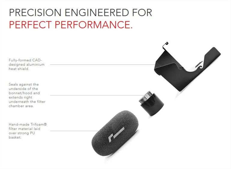 Systemet har direkte koldluftsindtag fra fronten, derudover afskærmes filteret fra varme via det medfølgende varmeskjold = bedre performance, og er god til over 600 hk.