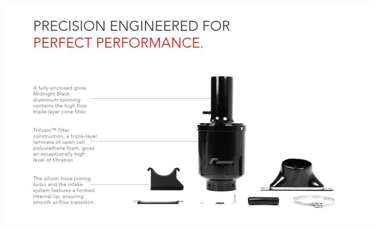 VWR luftfiltersystemet er produceret i midnight black anodiseret aluminium, og sørger for at der leveres kold luft fra fronten af bilen via det medfølgende front scoop. Dette giver effektiv kold lufttilførsel til brændstofmåleren.