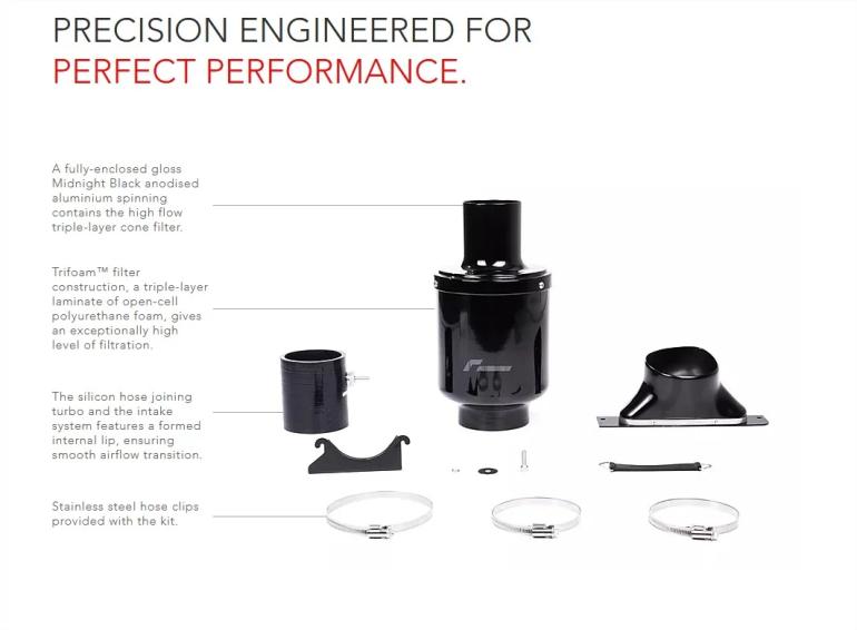 VWR luftfiltersystemet er produceret i midnight black anodiseret aluminium, og sørger for at der leveres kold luft fra fronten af bilen via det medfølgende front scoop. Dette giver effektiv kold lufttilførsel til brændstofmåleren.