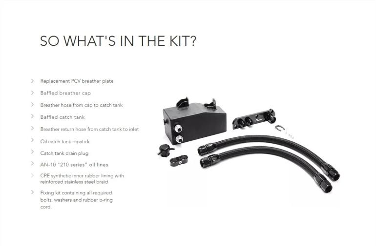 Klassisk oil catch tank kit opgraderet til RacingLine standard og "Oil Management System" - har du ønske om at køre trackday med din bil bygget på PQ35 (A5) platformen? Så er dette sæt et must - eller du risikerer at motoren mangler olie - så simpelt er det.