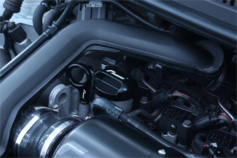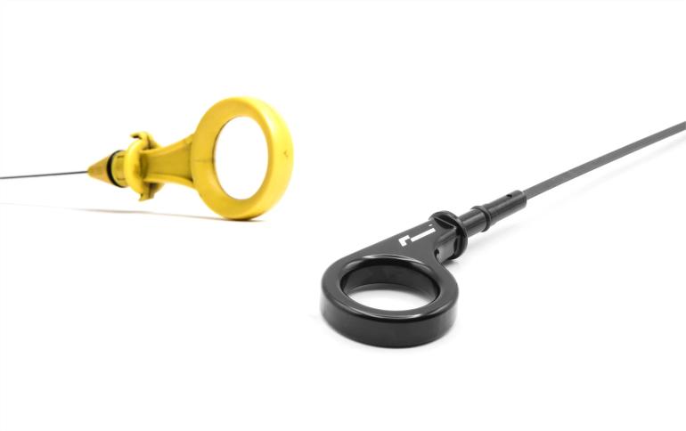 RacingLine har derfor lavet et oliepind som ikke mister styrken. Oliepinden fræst i 6061 aluminium på en 5-akset CNC maskine og herefter anodiseret i flot blank sort finish.