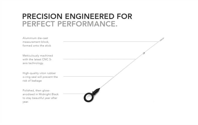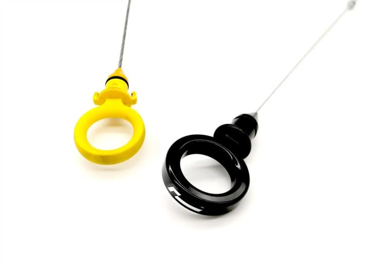 RacingLine har derfor lavet et oliepind som ikke mister styrken. Oliepinden fræst i 6061 aluminium på en 5-akset CNC maskine og herefter anodiseret i flot blank sort finish.