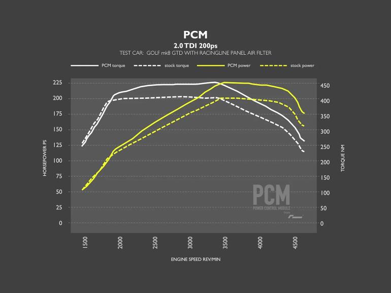 Den sidste generation af 2.0 TDI MQB EVO EA288 modellerne kan endnu ikke blive chiptunet via den traditionelle måde - Derfor har RacingLine produceret PCM (Power Control Module). PCM modulet virker via PCB (Printed Circuit Board) som kan kommikere med bilens ECU og på den måde sikkert forøge effekt og moment.