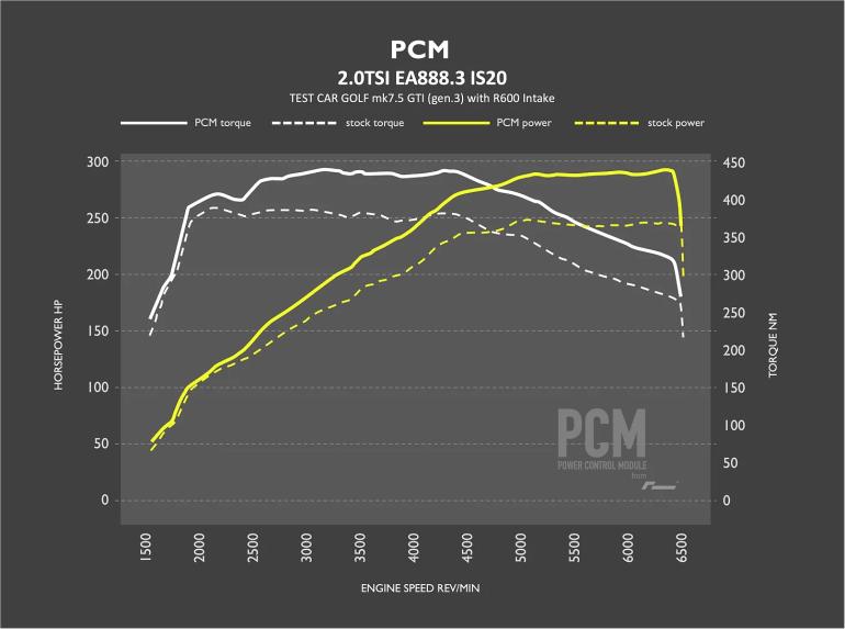 Den sidste generation af 2.0 TSI EA888 gen.3 IS20 modellerne kan endnu ikke blive chiptunet via den traditionelle måde - Derfor har RacingLine produceret PCM (Power Control Module). PCM modulet virker via PCB (Printed Circuit Board) som kan kommikere med bilens ECU og på den måde sikkert forøge effekt og moment.