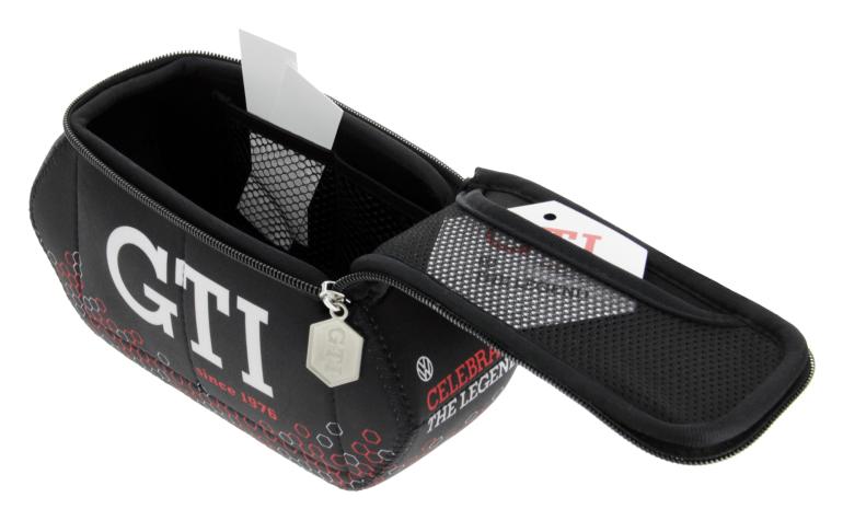 VW GTI 3D neoprene lille universel taske – sexkant/sort fra VW Collection er et officielt licenseret Volkswagen-produkt med retrodesign inspireret af de klassiske VW-modeller.