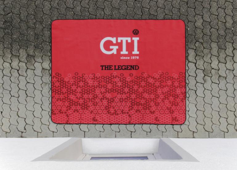 VW GTI picnictæppe (200x150cm) med bæretaske – legenden/rød fra VW Collection er et officielt licenseret Volkswagen-produkt med retrodesign inspireret af de klassiske VW-modeller.
