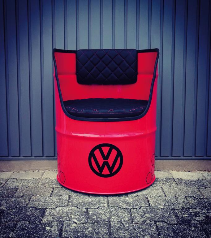 VW GTI stol af olietønde (208L) – rød fra VW Collection er et officielt licenseret Volkswagen-produkt med retrodesign inspireret af de klassiske VW-modeller.