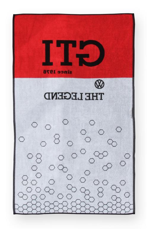 VW GTI strandhåndklæde – legenden/sort fra VW Collection er et officielt licenseret Volkswagen-produkt med retrodesign inspireret af de klassiske VW-modeller.