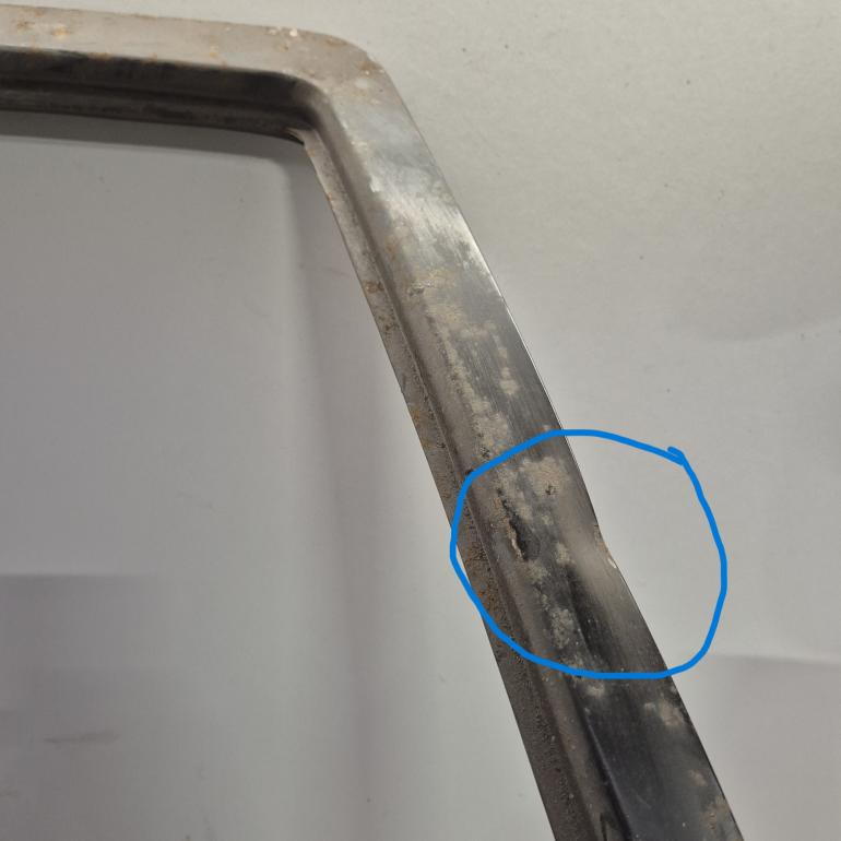 Bagklappen har minimalt overfladerust og en lille bugle