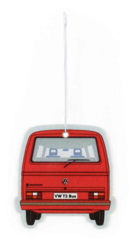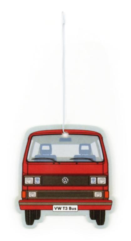 VW T3 bus luftfrisker – vanilje/rød fra VW Collection er et officielt licenseret Volkswagen-produkt med retrodesign inspireret af de klassiske VW-modeller.